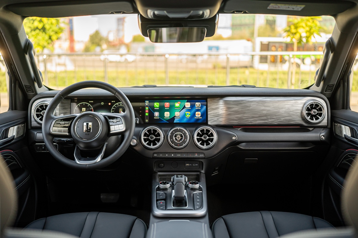 Интерьер у внедорожника City Plus также обновился, стал более стильный и комфортный. Продумана каждая деталь, что создает атмосферу премиальности и отражает безупречное качество отделки. Потолок салона выполнен в классическом черном цвете, что создает ощущение уюта и камерности. Среди нововведений – двойные стекла, тонировка задних окон, модернизированное рулевое колесо, внешне схожее по дизайну старшей модели Tank 500. Все это теперь свойственно для всех трех комплектаций: Premium, Tech Plus и City Plus.