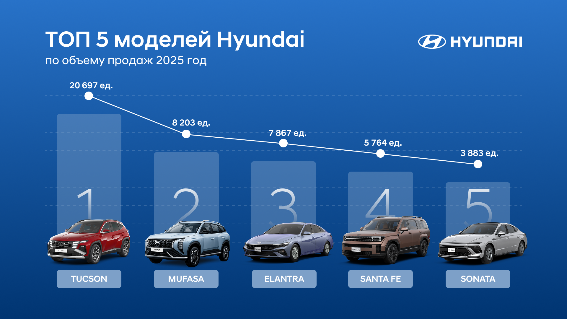 Фото: топ-5 моделей Hyundai по продажам в 2025 году