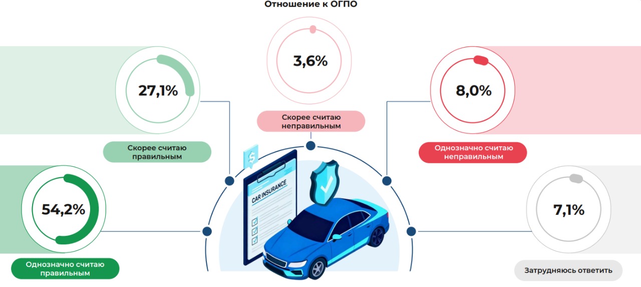 При этом отношение к необходимости оформлять ОГПО среди казахстанцев в целом скорее положительное, 81,3% считают обязанность оформлять данный вид страховки правильной.