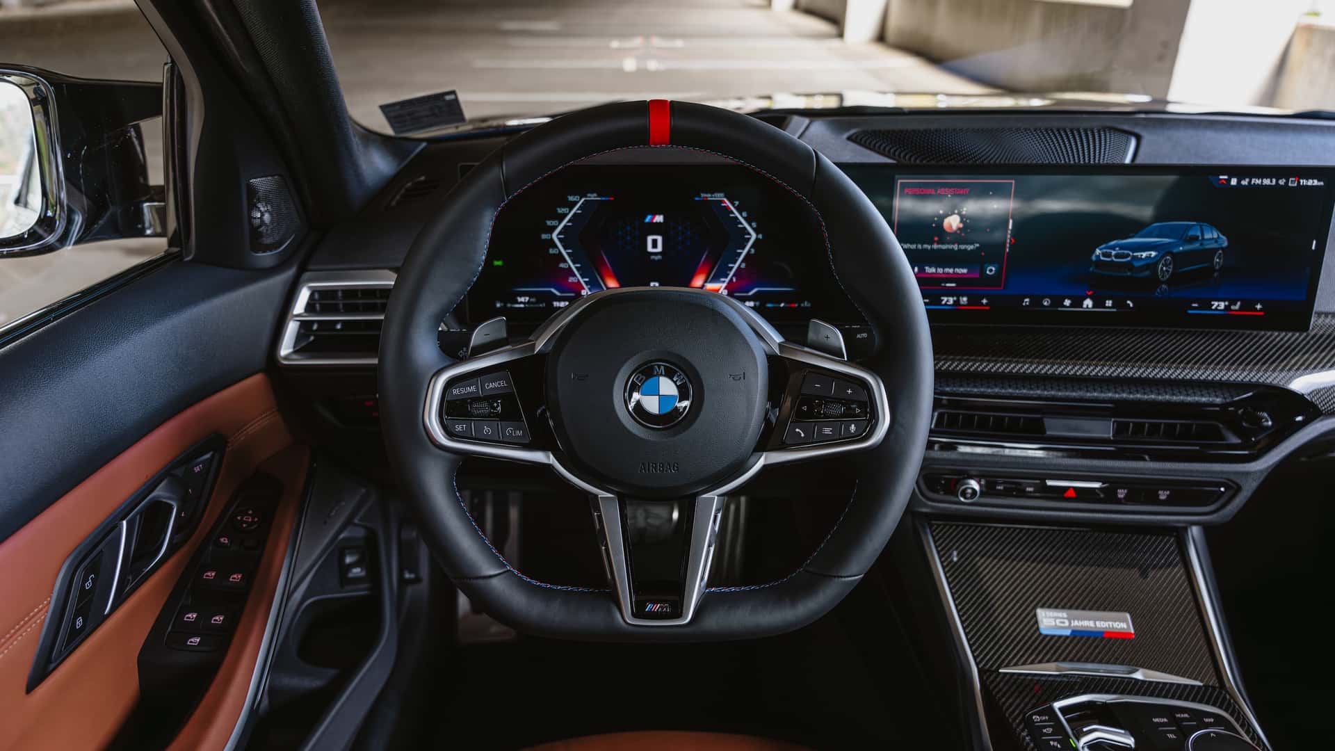 Каждый цвет кузова сочетается с одним из трех вариантов отделки салона кожей: черным, цвета слоновой кости или цвета тартуфо, а также отделкой из углеродного волокна и шильдиком 3 Series 50 Jahre Edition по всему салону. Кроме того, BMW впервые предлагает расширенную отделку кожей Merino для третьей серии, которая входит в стандартную комплектацию.