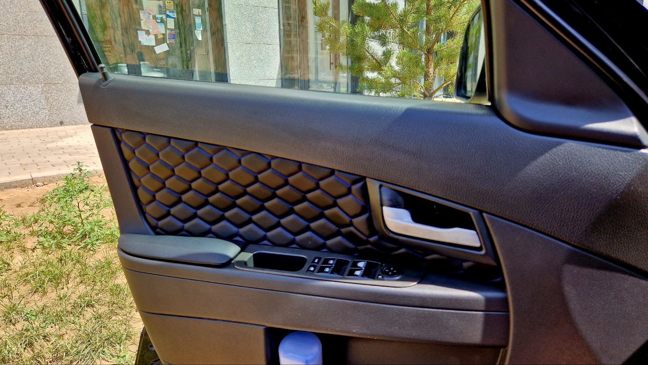 С остальным сложнее из-за малого выбора на отечественных площадках, пришлось идти на зарубежные. Там я купил и обшивку дверных карт, и мягкие подлокотники на двери, и чехол для центрального подлокотника. Все ставилось так же просто, но с дверьми пришлось повозиться – нужно разбирать каждую дверь и вставлять новый материал по отдельности. Примерно два часа мучений и недовольных восклицаний в паркинге, и все было готово.