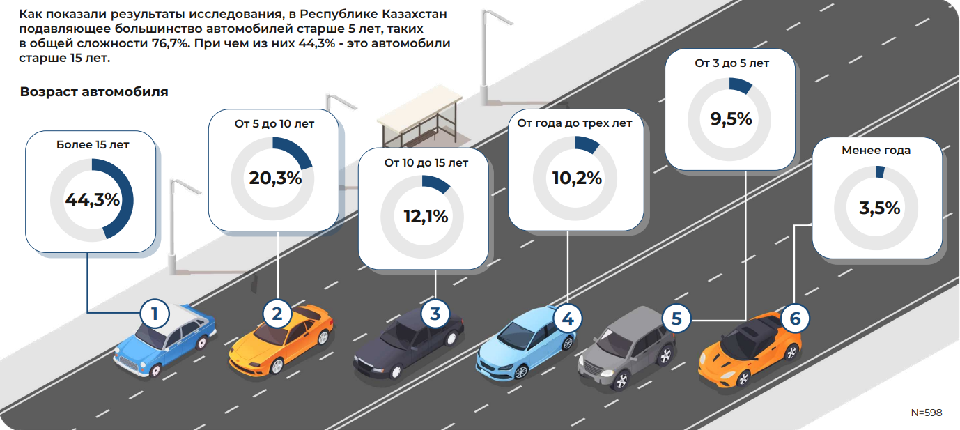 Казахстанская исследовательская компания United Research Technologies Group (URTG) опубликовала результаты опроса автовладельцев, проведенного в марте 2023 года. Ключевые аспекты исследования: наличие автомобиля, потенциал автомобильного рынка (желание приобрести авто), основные причины отказа от покупки авто, парковка и хранение, возраст казахстанского автопарка, страхование (наличие ОГПО и отношение к необходимости оформлять автостраховку).